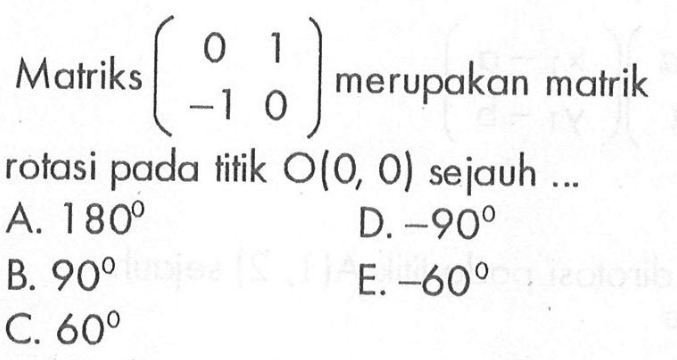 ![Garis l=2x-y+akar(2)=0 dirotasi oleh [O(0, 0), R(45)]. Persamaan bayangan garis l yang terjadi berbentuk ....](/_next/image?url=https%3A%2F%2Fmedia-public.colearn.id%2Fimages%2Fquestions%2FM0992681P008.png&w=3840&q=75)